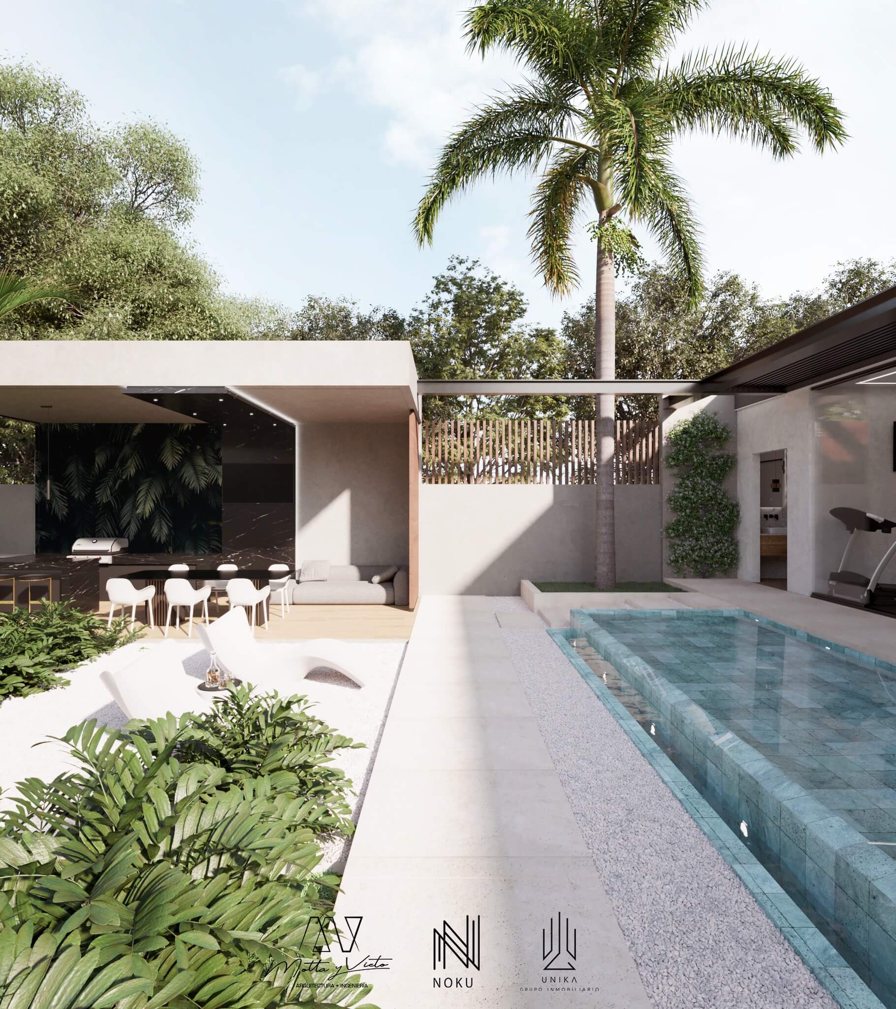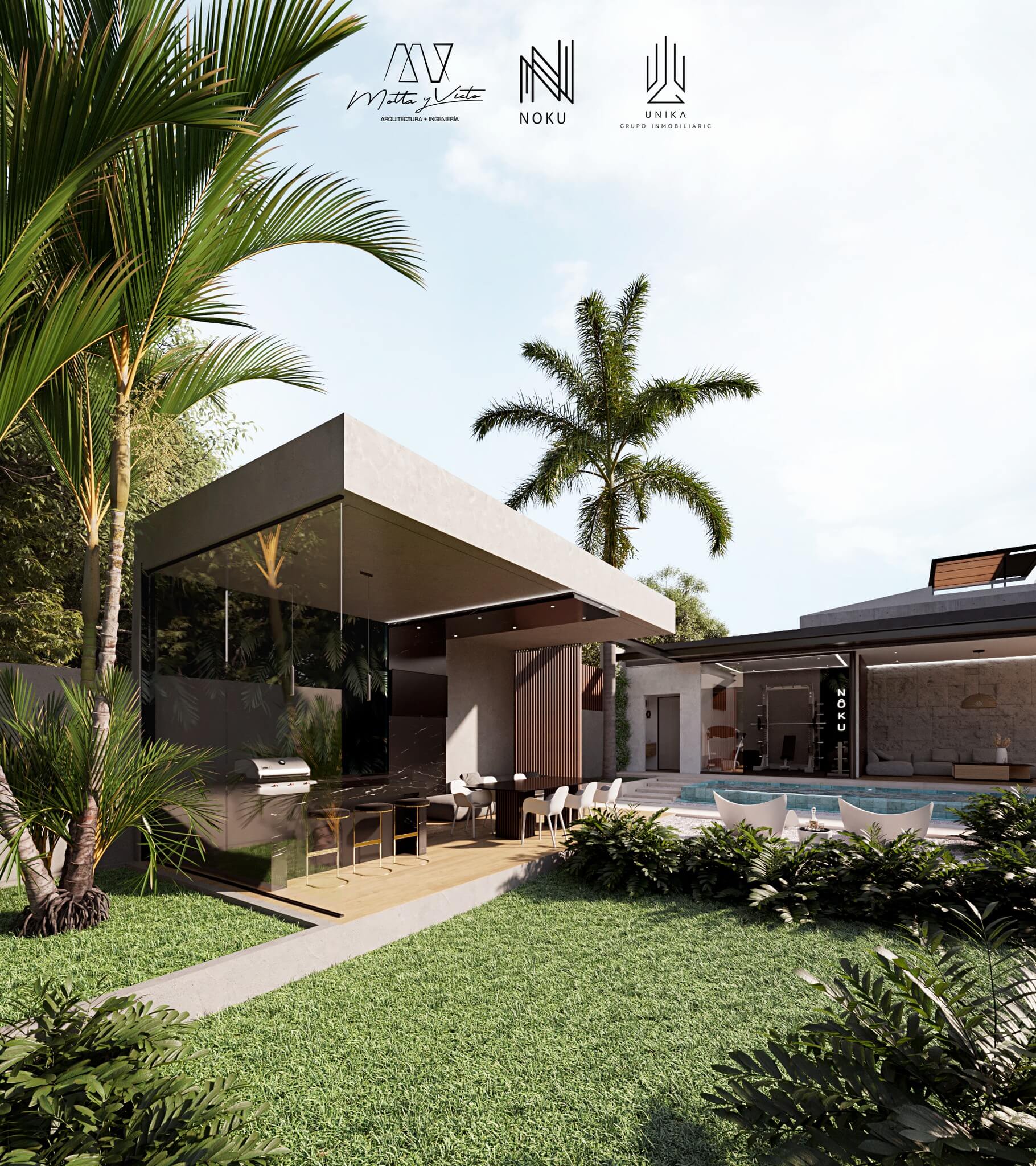 de diseño que juegue y mezcle lo tropical y contemporánea con elementos